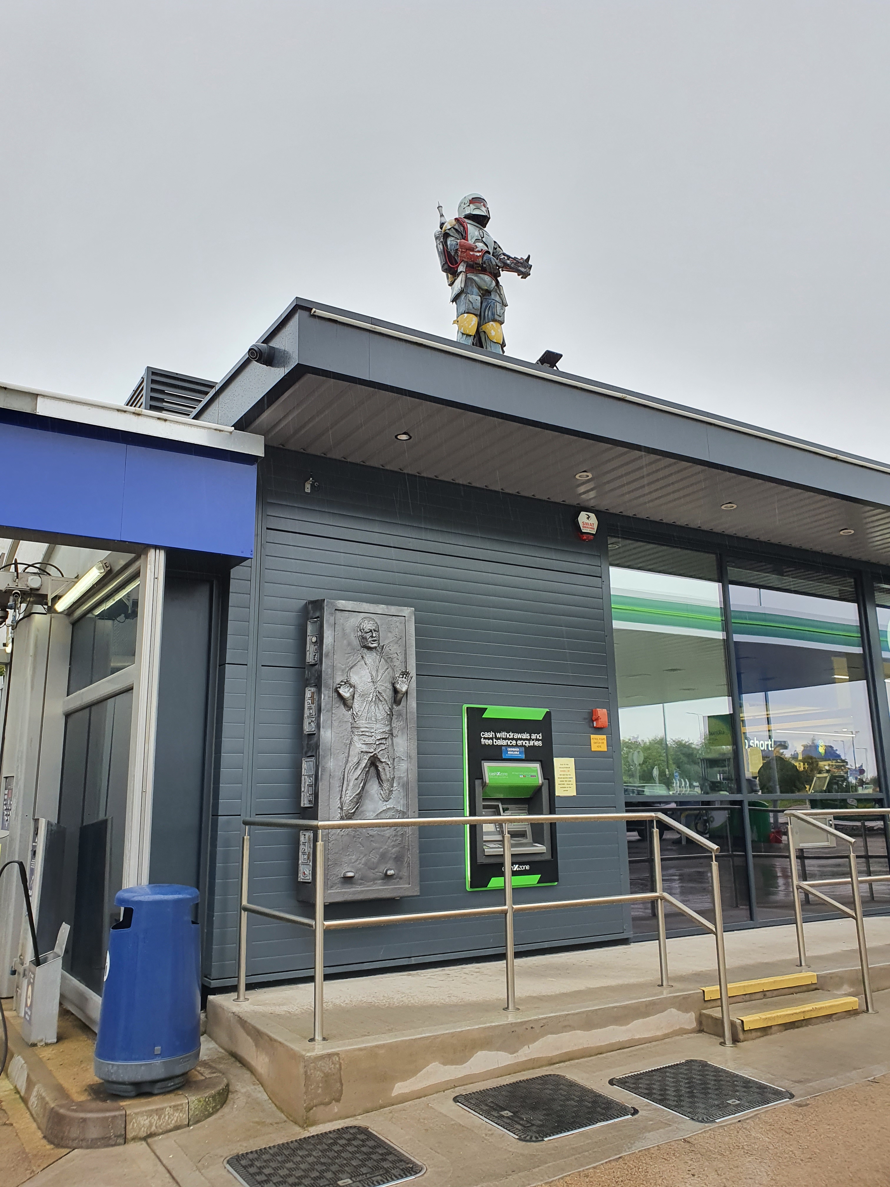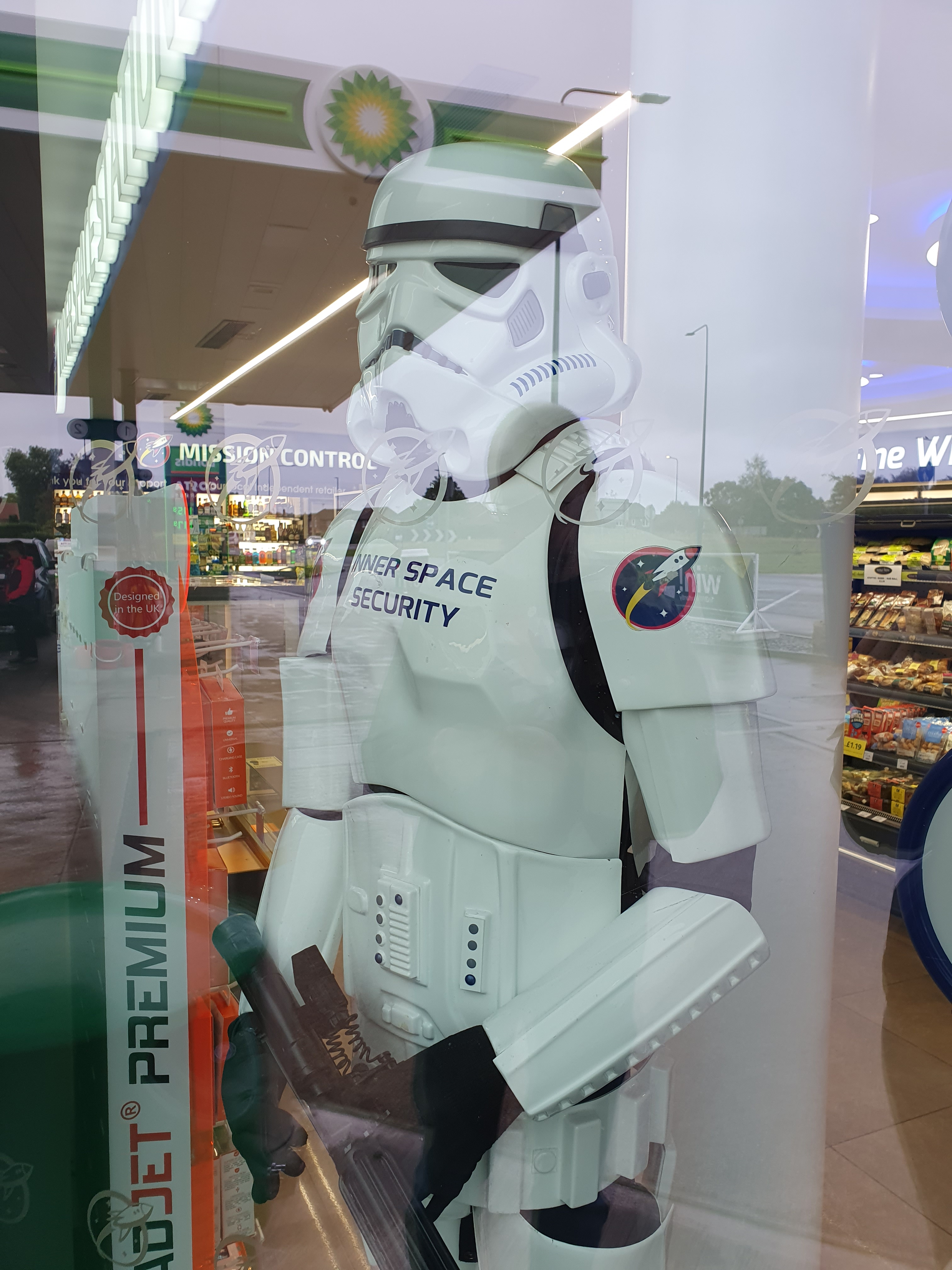Just outside of York is a service station, on the A64 (East) York Ring Road to be exact. Not unusual to have a petrol stop just before a motorway you’re thinking, but this one brags of being the last stop before Mars… It’s not a film location but I’m making an exception in a year were every comic-con and sci-fi event has been cancelled so far. This place was an unexpected joy to find and it deserves bigging up.