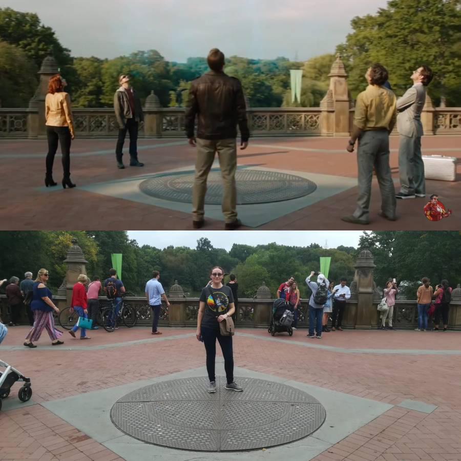 Grand Central Bridge (Park Avenue Viaduct) is the location where the Avengers, well, assemble in the big fight against the Chitauri in New York at the climax of ‘The Avengers’ (aka ‘Avengers Assemble’ in the UK). The end of the film where a captured Loki is returned to Thor’s custody was filmed in Central Park in a very recognisable section of pavement – I had to grab a picture at the spot.