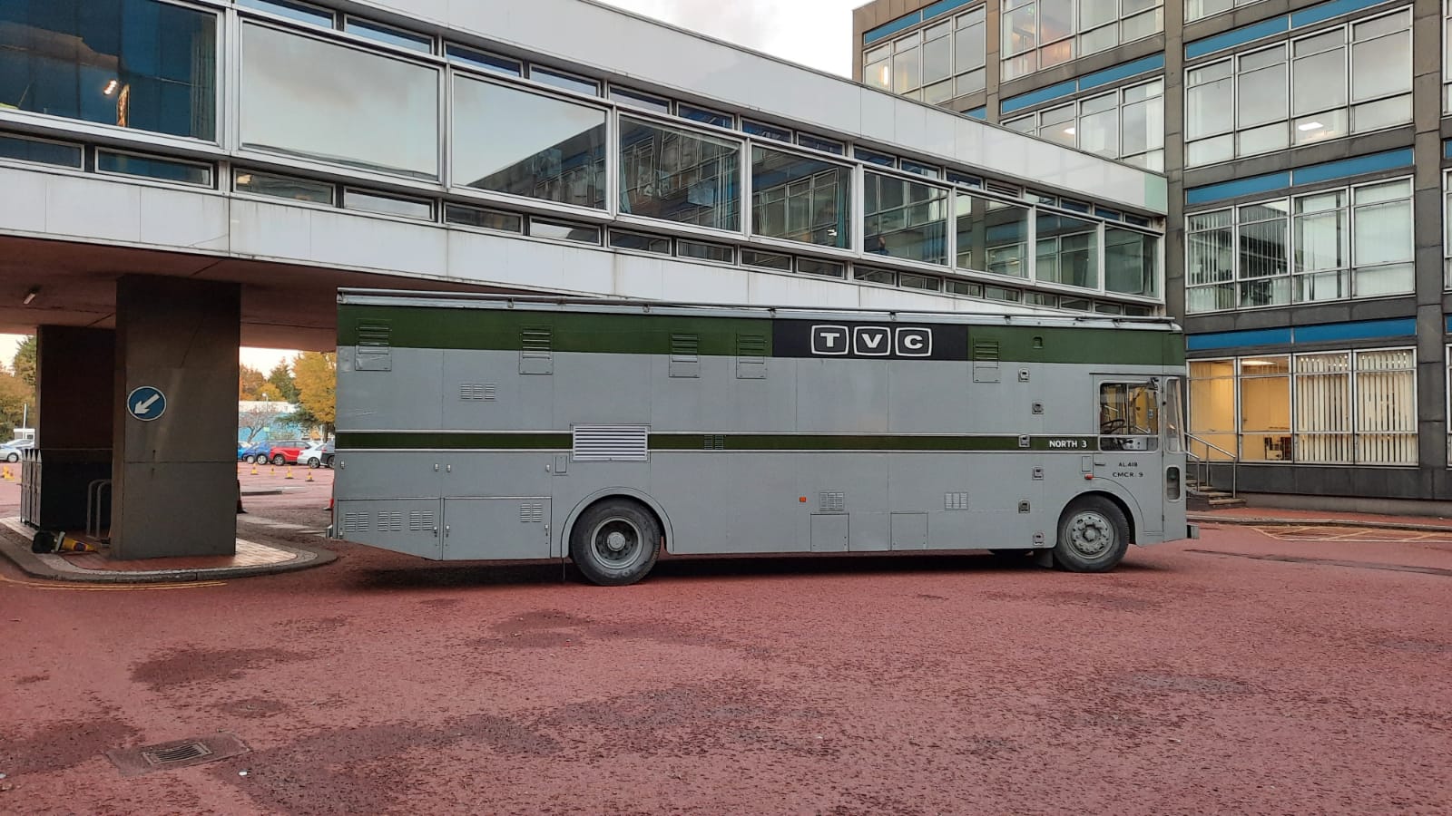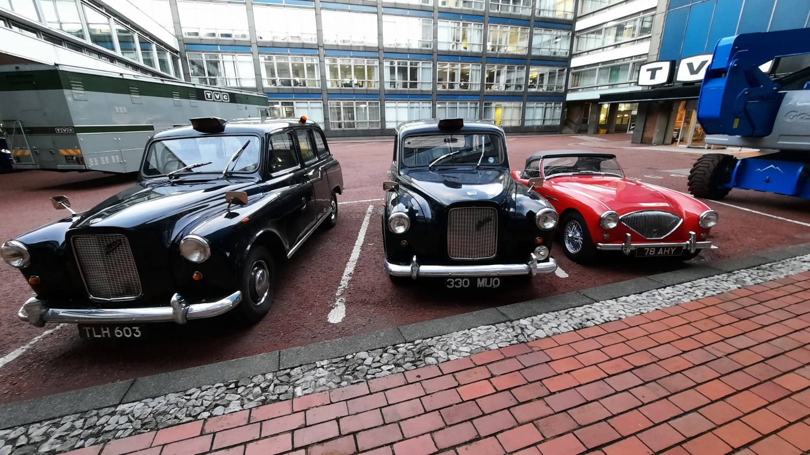 My husband took a detour from his usual running route when he learned a Bond girl might be round the corner. He thinks he did indeed pass Gemma as she was being escorted to set – she was wearing a big puffer coat and her blonde beehive hair was covered to protect it from the elements. There were period vehicles parked outside the main Tower Building entrance and new ‘TVC’ signage added to the frontage. They were there for a few weeks judging from how long the location base signs were up.