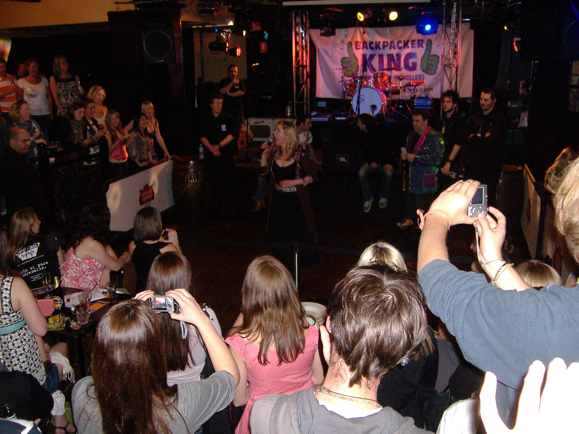 Clutching my free drink token I headed to the bar, by the time I’d got my half pint I’d been spotted by two girls (Liz and Gemma) from Preston who I’d met in a hostel in Adelaide. I joined their table with a few others and became the “Neighbour-oo’s” team. This was about 7pm and nothing really kicked off until 8 – lots of time to spend money at the bar me thinks and to suffer the pounding dance music.