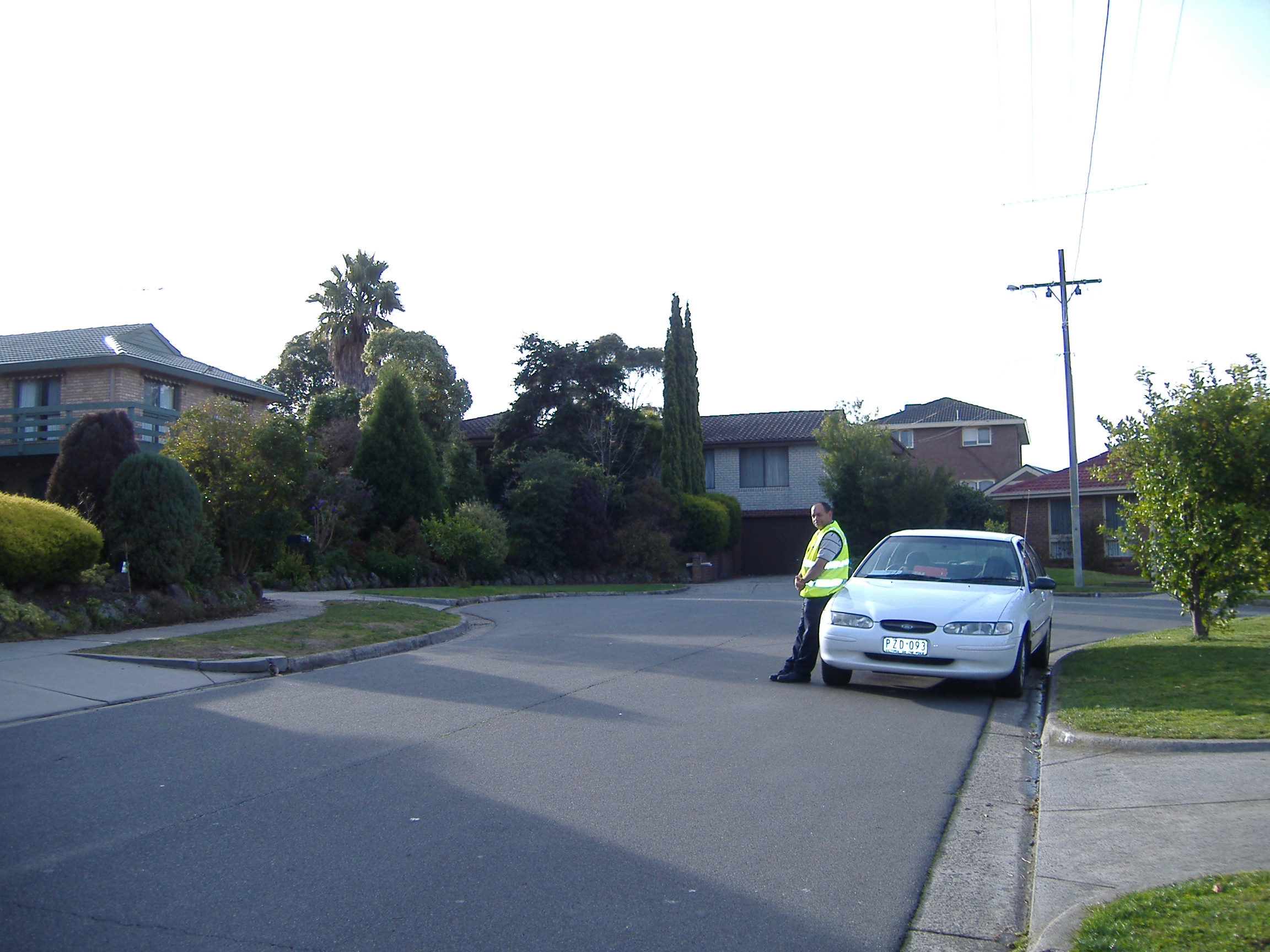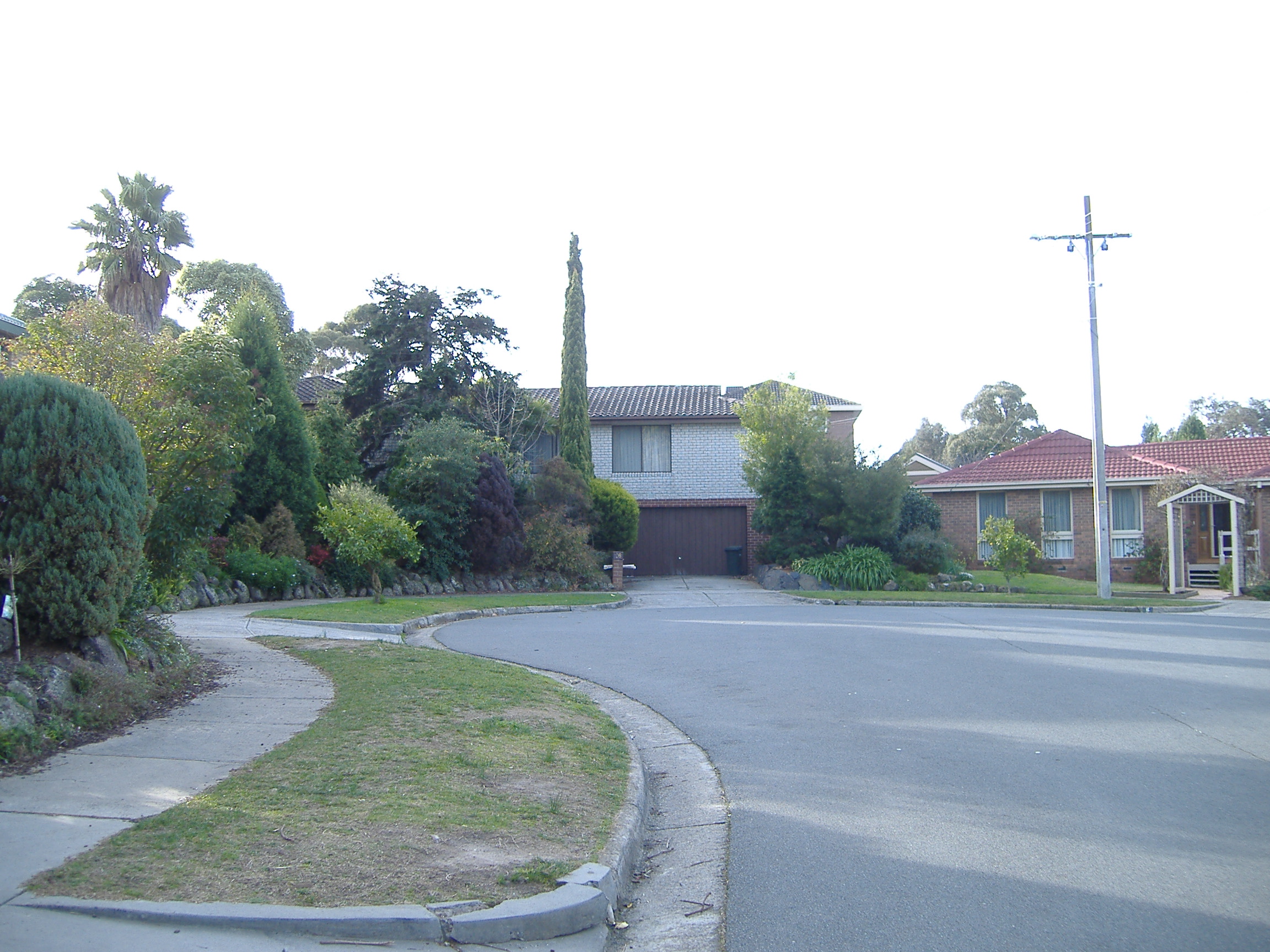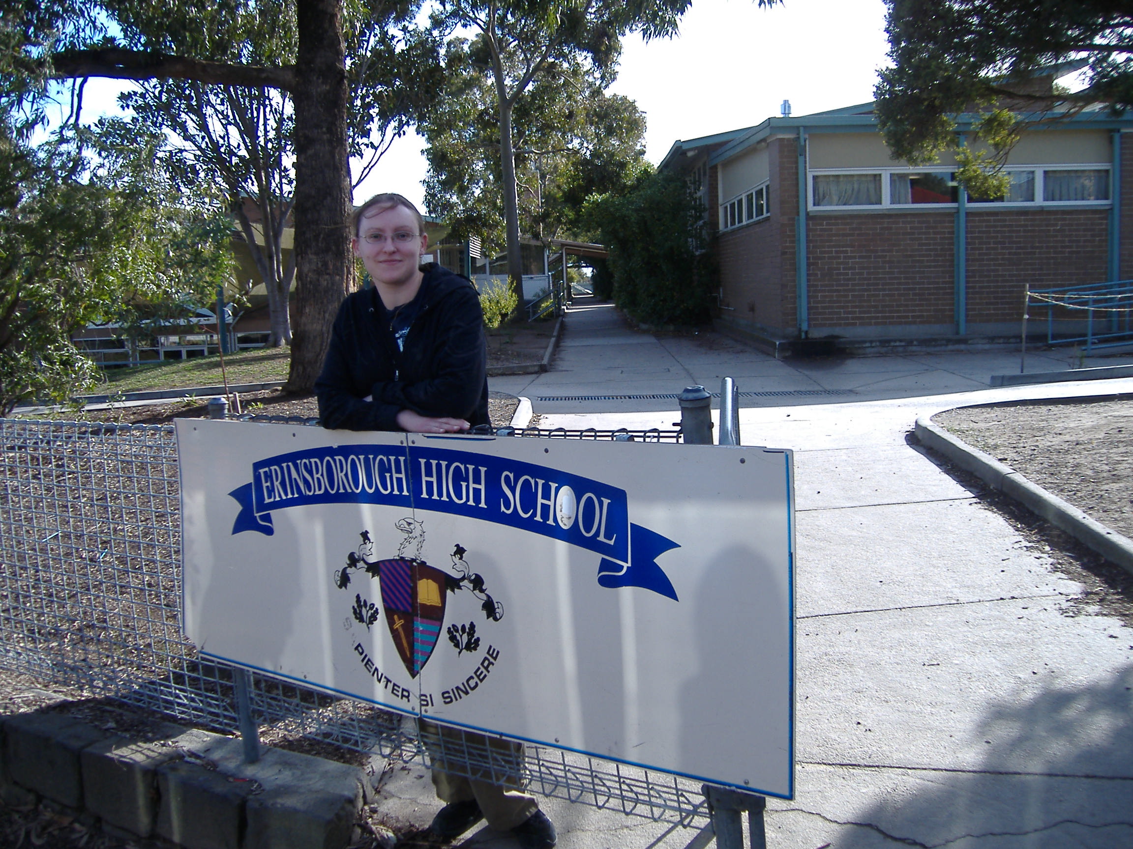 First stop was the ‘shop’ – well a few T-shirts and videos on a shelf. Then we headed off into the suburbs. First location was the school used as Erinsborough High called Blackburn School and taught English to non-natives. Our guide got a paste board sign out of the back of the bus, then hooked it on the fence – voila! Instant Erinsborough High! After a photo op we were back on the bus (we had a DVD player on board and got to watch some episodes while we were driving about, Scott & Charlene’s wedding and Brad & Beth’s, along with some music videos made by several actors / actresses).