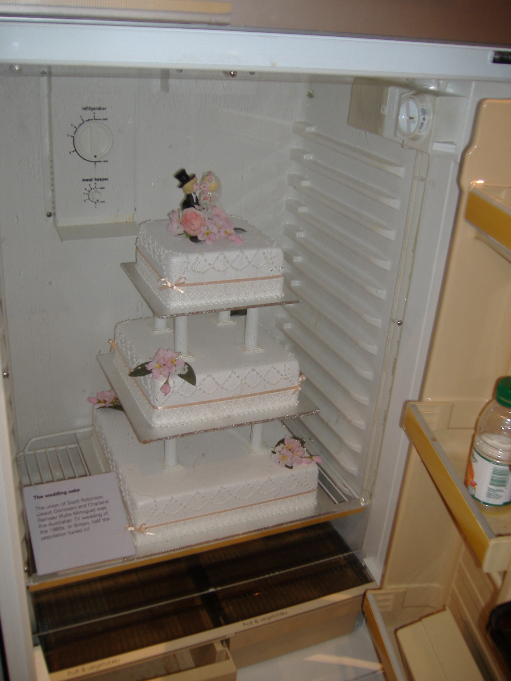 Went to Melbourne Museum – great place, and they have an Australian culture section in which they have the original Robinson kitchen set! You get to walk onto it, open a few cupboards etc, Scott and Charlene’s wedding cake is in the fridge! You can see the graffiti done by the cast on the back of the set. Thought for the day – Scott & Charlene have been ‘married’ for 20 years – eek!