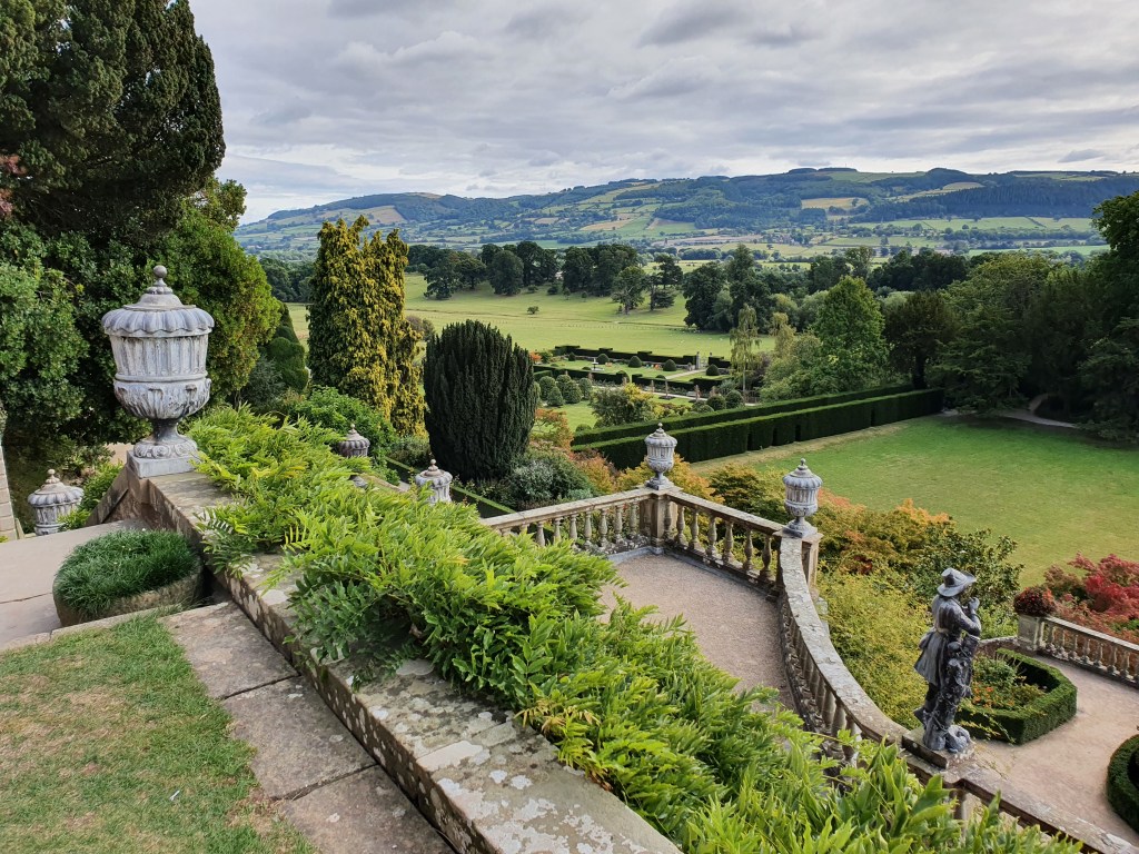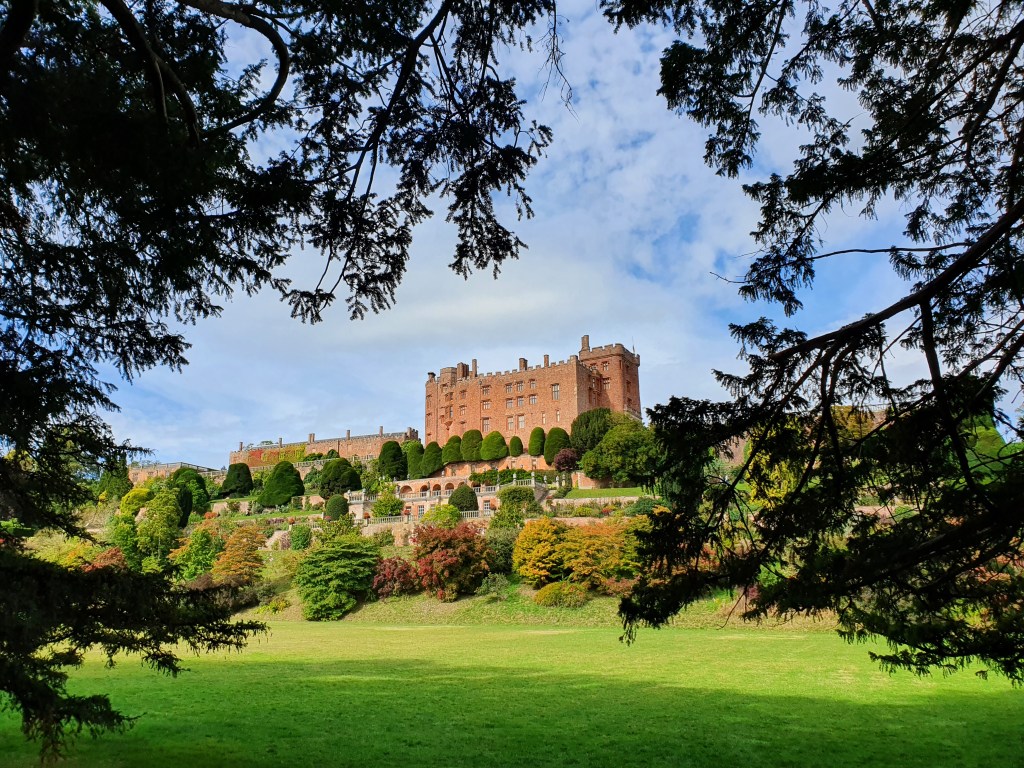 This happened in September 2022 when my husband and I had a weekend break in mid Wales for a family celebration. For the drive back we thought we’d find somewhere along the way back to stop off at and visit for a few hours to break up the journey. Google maps showed a National Trust property in Welshpool called Powis Castle that fitted the bill. Not a place I had ever heard of but it looked quite attractive on the website, the weather forecast was fair, and we do like a cup of tea and a scone or two, so we planned the detour. Whilst reading up on it my husband thought to check if anything had been filmed there as it was quite a striking looking place.