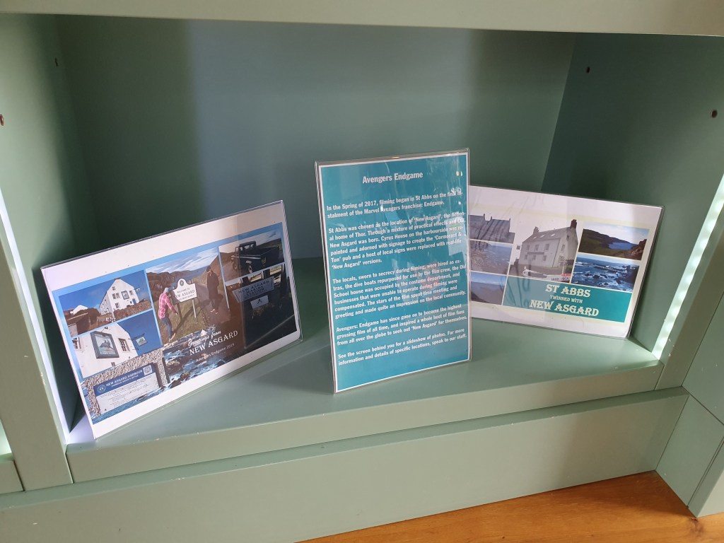 Walking into the village one of the first buildings you come to is the St Abbs Visitor Centre. The centre has a prime viewpoint which overlooks the harbour. Opening at 10am we were the first ones in that morning. I was delighted to see an Avengers themed display straightaway. I love that the filming isn’t just acknowledged, it’s celebrated, having its own place amongst the history of the village. Quite a contrast to somewhere like Plockton (aka Summerisle in ‘The Wicker Man’) which barely acknowledges its use as a film and television location.