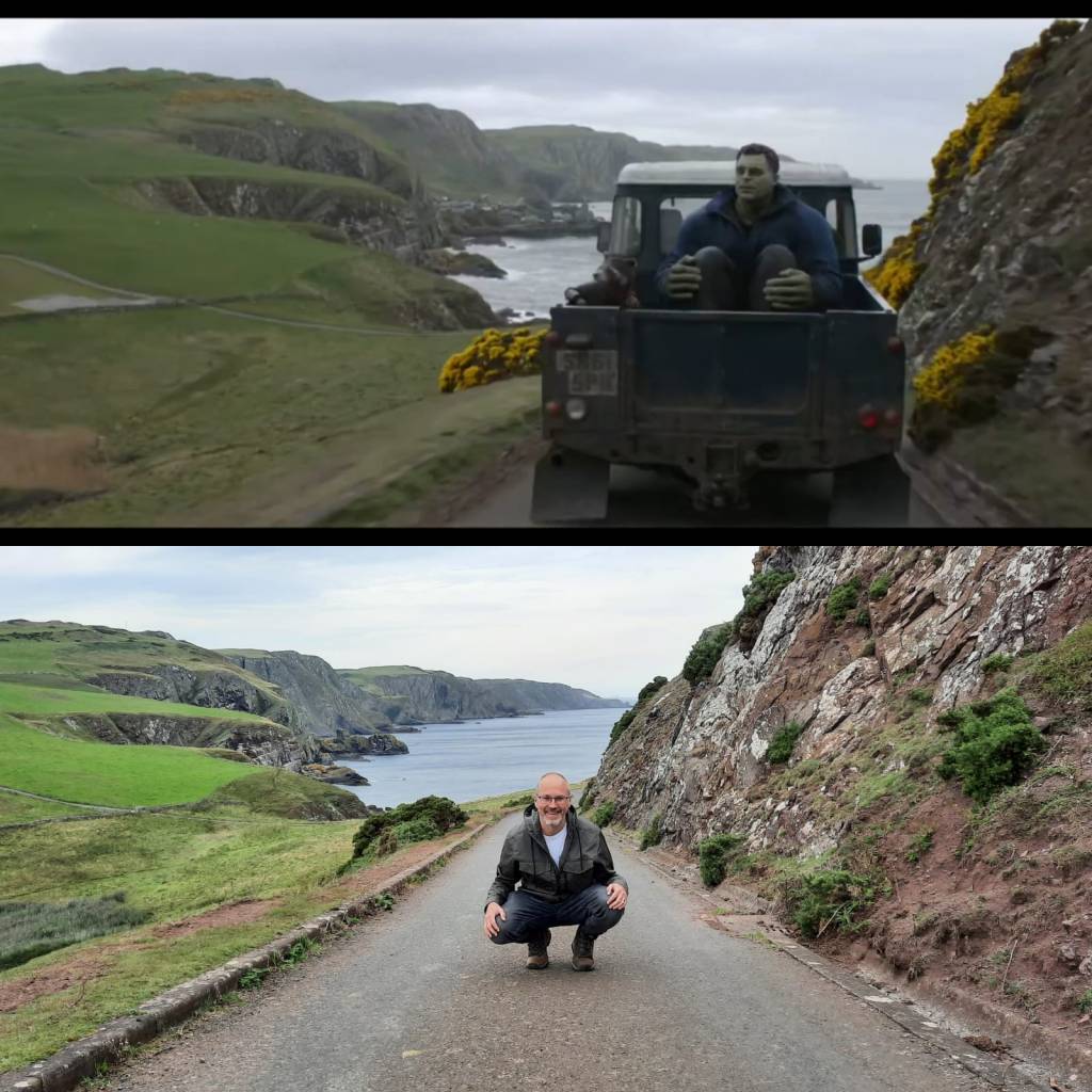 It was a quiet Sunday morning in the village, with only a few people about and some fishermen on their boats. My husband and I walked down to the harbour wall and tried to match up screenshots, trying to work out what exists and what was built for the film. They didn’t really have to do much to the village for the ‘Endgame’ other than add some set dressing and a little CGI. We matched up photos of the Hulk talking to Valkyrie. Closer inspection revealed that there’s some creative licence taken with how the Land Rover drives onto the harbour wall, as it comes from a direction where, in reality, there’s no road!