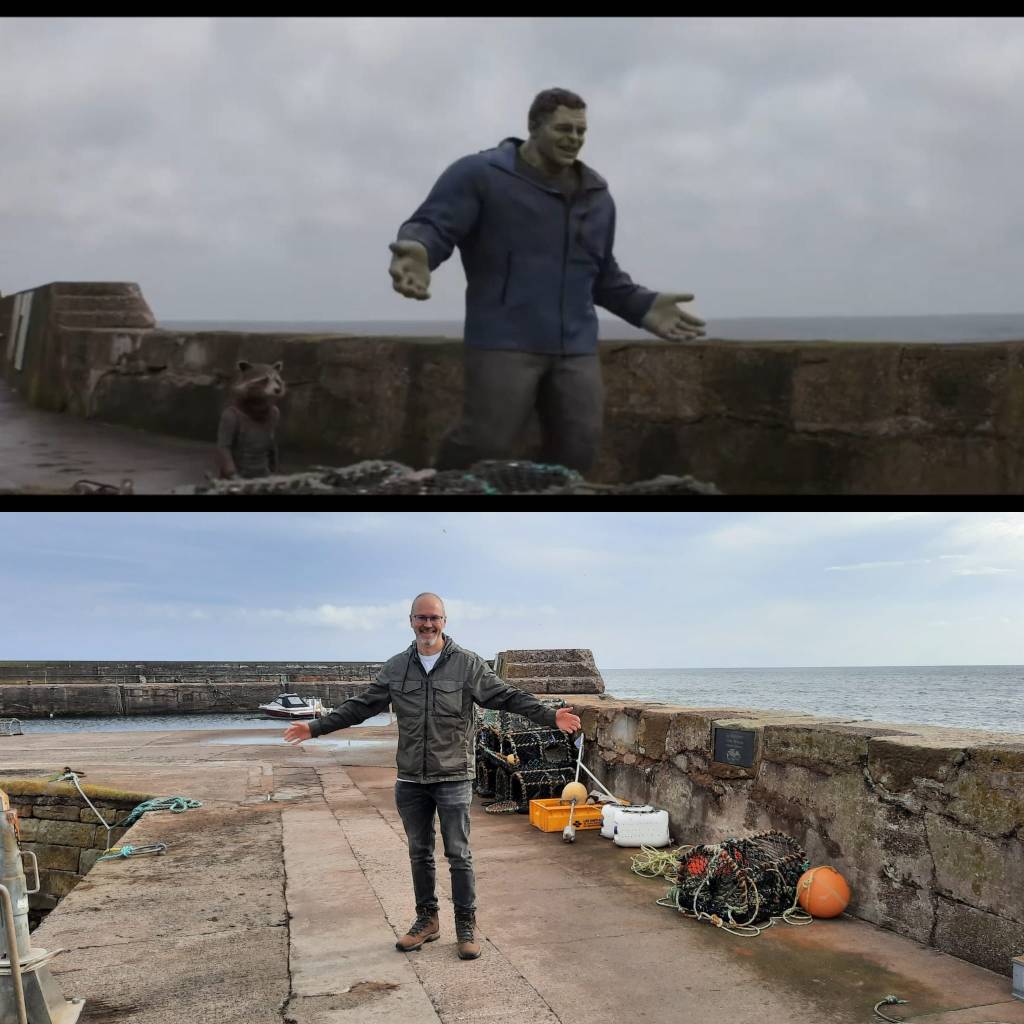 In the film ‘Engame’ The characters Hulk and Rocket go to visit Thor and there are shots of them on the back of a Land Rover en route. Driving through beautiful scenery they pass a road sign saying, ‘Welcome to New Asgard’. This isn’t the actual road into the village, but more about that later. The local community has obviously embraced the geekiness and have installed their own version on the real road into the village which is a very nice touch. St Abbs ‘twinned’ with Avengers village – BBC News