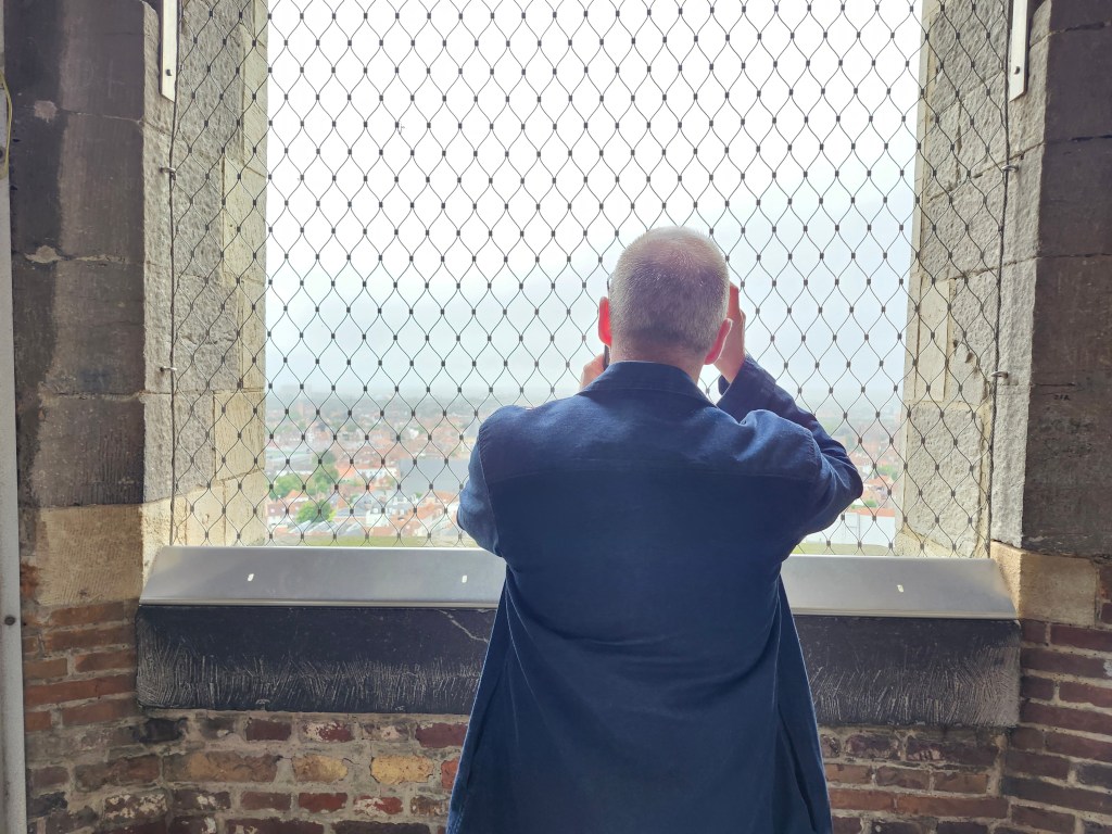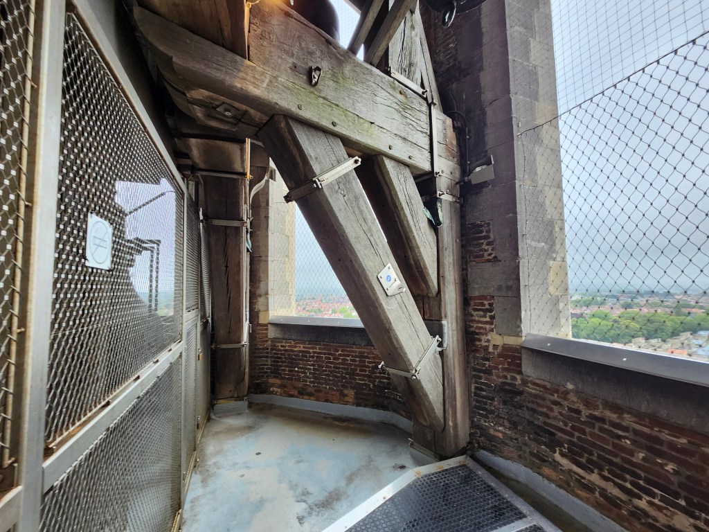 Our first stop of the day was the Belfort clock tower, which we wanted to climb as it features quite significantly in the film. The weather was rather overcast and after climbing to the top we found it was quite wet and windy in the exposed belfry. It was easy to see why the belfry was recreated as a set in the film, it’s quite confined, and you can’t actually see over the balcony to look down on the square, as you do in the film -the wall is too thick.