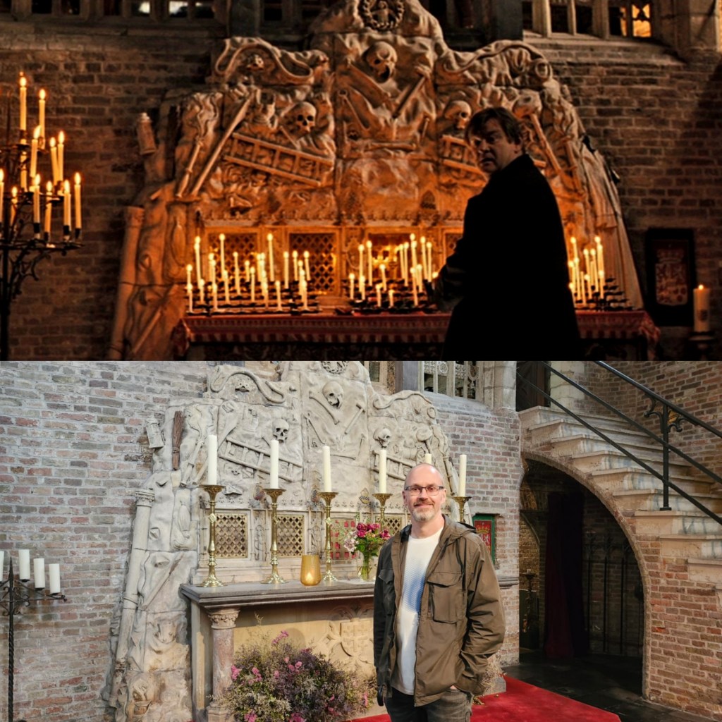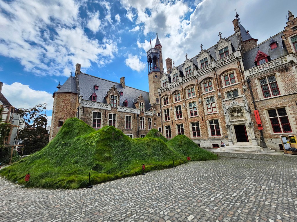 Back in the centre of the city we wandered around the outside of the Gruuthusemuseum, which we knew was used as the backdrop for dramatic scenes in the film’s finale. It looked a little different, as there was a large grass mound in the courtyard that was part of an art exhibition, and a small visitor centre appears to have been built by since the 2008 filming. The museum itself is worth a walk around, and it’s included in the 3-day museum pass we used during our stay.