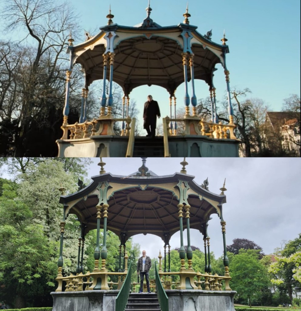Only a short walk from the centre of the city was Koningin Astridpark. A pleasant enough city park, which wouldn’t have been particularly worth visiting if it wasn’t another ‘In Bruges’ location. We enjoyed finding the bandstand and children’s play area and comparing screenshots as we tried to match up where Colin Farrell’s character Ray nearly commits suicide (did I mention this was our wedding anniversary celebration?) The bandstand, although repainted, was still recognisable but the play area had been replaced with new equipment and was quite different.