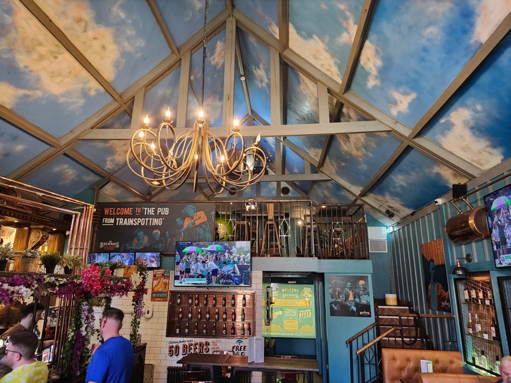 I owe the subject of this blog to my husband Andy as he’d done a bit of research and had discovered that there was a pub in the city that was used in the 1996 film ‘Trainspotting’. Notably the scene were the character Begbie played by Robert Carlyle, deliberately and ever so casually tosses a pint glass over a balcony onto unsuspecting people below. Nearly 30 years later it’s still a pub and is located just a short walk from Glasgow’s Botanical Gardens.