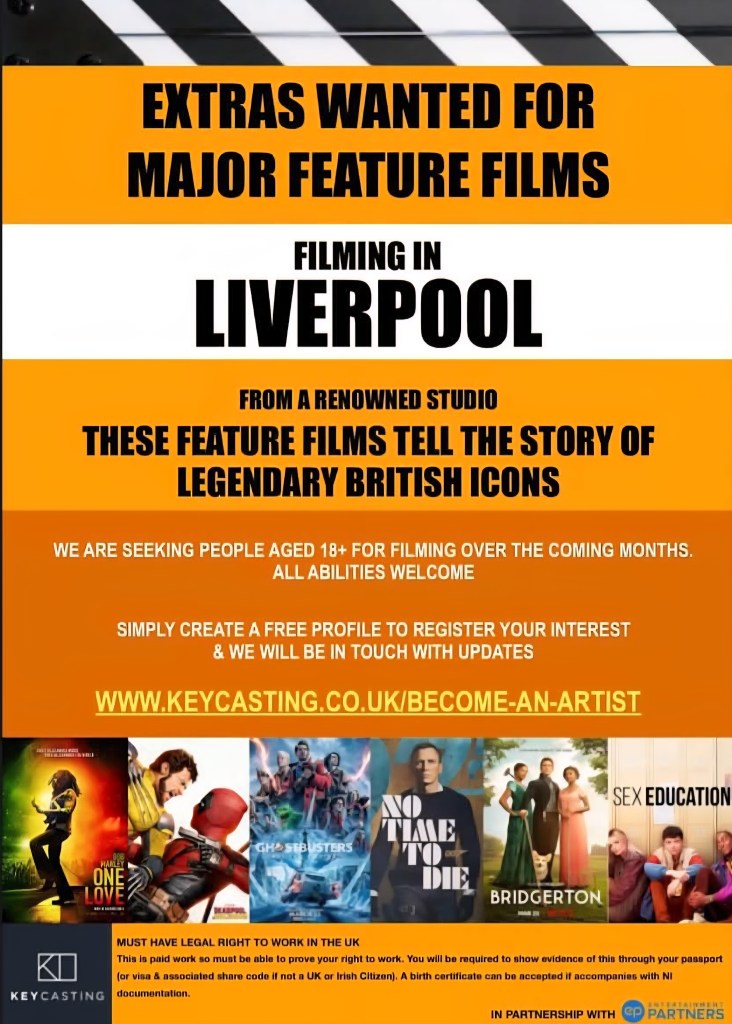 Around October 2025 there was a call out for extras in the Liverpool area by the company Key Casting. While they didn’t specifically mention the Beatles films the announcement strongly hinted at them – if you were paying attention “These feature films tell the story of legendary British icons.”