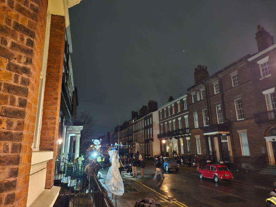 P.S. I was back in Liverpool a few days later and walked by Rodney Street again to take a look at the house they’d used for filming. Interestingly on the night of filming the door appeared black, but in reality it’s green. It’s the same house number – 27 – so it could have been a trick of the light but it’s more likely that it was painted for the filming then returned to its original colour.