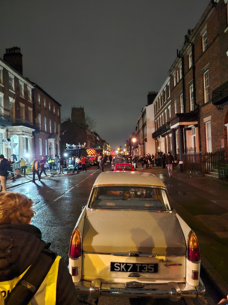 The filming was covered in the Liverpool Echo Famous Liverpool road closed as crowd gathers for major production – Liverpool Echo I also kept an eye on social media the following day and saw a suggestion that I may have witnessed a scene where Ringo and his girlfriend visit Brian Epstein. We’ll find out in 2028 when the films are released. In the meantime I’ll stay vigilant!